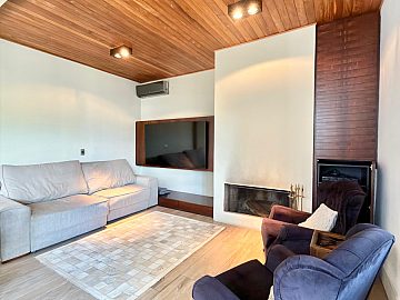 A residência é distribuída a partir de um belo hall de entrada com pé-direito duplo, que conduz à primeira sala de estar, proporcionando imponência e charme ao ambiente. Conta ainda com escritório, lavabo, sala de TV com lareira e um encantador jardim de inverno, que garante excelente iluminação natural aos ambientes, além de sistema de som ambiente.