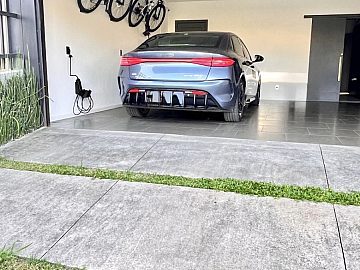 Garagem coberta e fechada para dois carros grandes lado a lado.