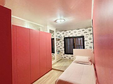 Ficam no imóvel os móveis planejados: da cozinha, do quarto de casal e do quarto rosa, três splits um em casa quarto e um split grande na sala.