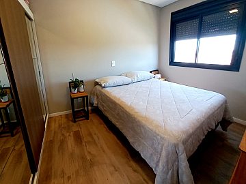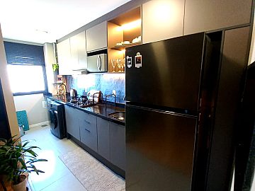 Imóvel composto por sala de estar e jantar integradas, cozinha planejada com churrasqueira, 1 dormitório e 1 banheiro.