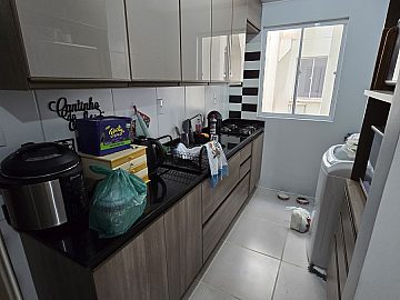 Distribuído em 2 dormitórios, 1 banheiro, sala integrada com a cozinha e uma vaga de garagem.