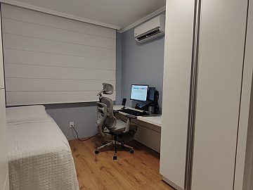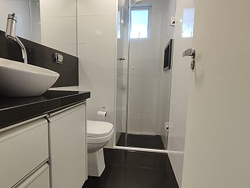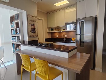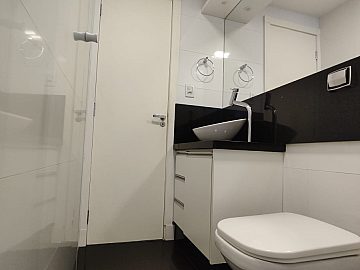 Terceiro andar, fechadura eletrônica, ficam todos os móveis planejados, tampos em granito, cubas e espelhos.