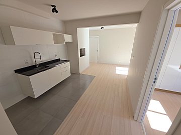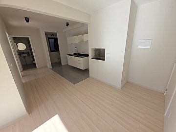 Distribuído em sala de estar, 2 dormitórios, banheiro social, cozinha com churrasqueira e elevador.