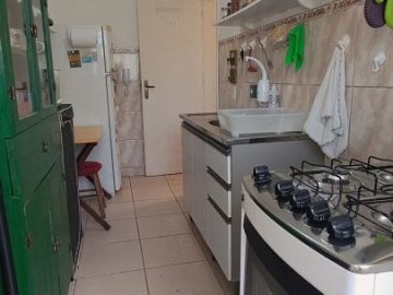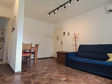 Distribuído em sala de estar, sacada, dois dormitórios (originalmente três, transformados para ampliação do espaço), banheiro social e uma vaga de garagem em box privativo.