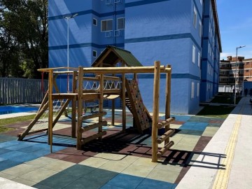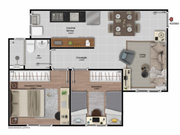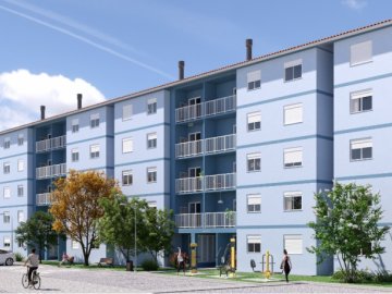 Apartamentos de 59m², distribuídos em 2 dormitórios amplos, ampla sala de estar, cozinha, 1 banheiro, vaga de garagem e sacada com churrasqueira.