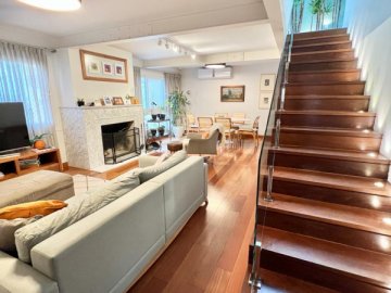 No segundo andar, sala com lareira integrada ao espaço gourmet com parrilla Uruguaia, 01 suíte master com closet.