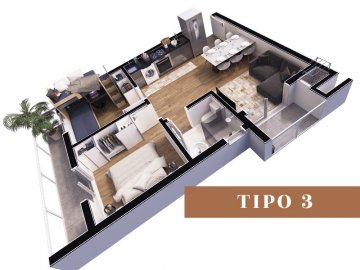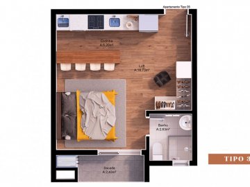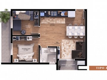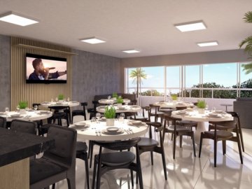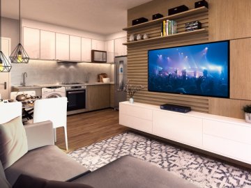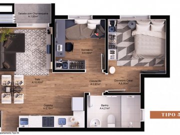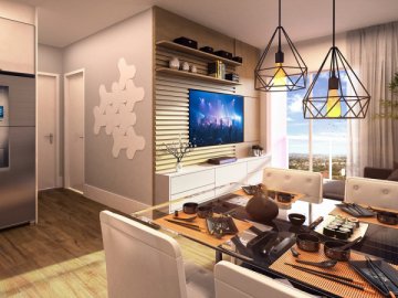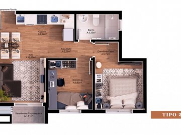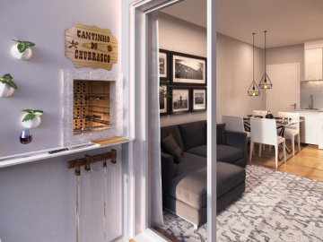 Apartamento distribuído por 02 dormitórios, 01 banheiro, sala, cozinha americana, sacada com churrasqueira e uma vaga de garagem, medindo 46.60m² de área privativa.
