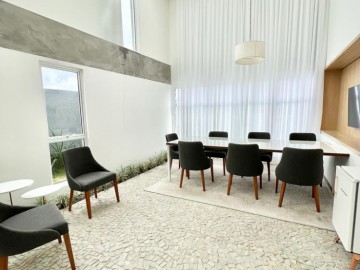 O prédio conta com vagas para veículos, bicicletário e áreas comuns como sala de reuniões, lounge, terraço condominial, lavanderia e espaço gourmet.
