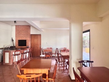 Distribuído em sala de jantar e estar com lareira, sacada fechada com churrasqueira, cozinha, área de serviço, 03 dormitórios sendo 01 suíte, um dos dormitórios com sacada fechada, e banheiro social.