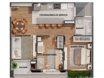 Os apartamentos do Acqua Family Club contam com living integrado à cozinha e sacada com churrasqueira, oferecendo amplitude, iluminação natural e um ótimo aproveitamento de espaço. Agora é só planejar os móveis, junto dos que dividem todos os momentos com você, e acrescentar personalidade para o seu lar.