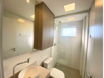 O apartamento, localizado em um andar elevado, é iluminado pelo sol do norte, criando ambientes acolhedores. Móveis planejados proporcionam um toque moderno e funcional. O living integrado à cozinha é perfeito para momentos em família.
