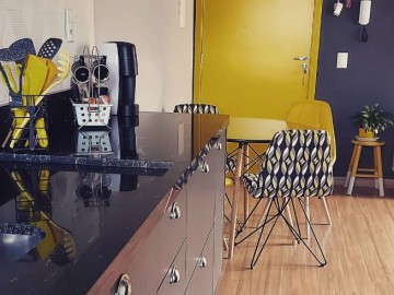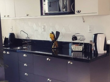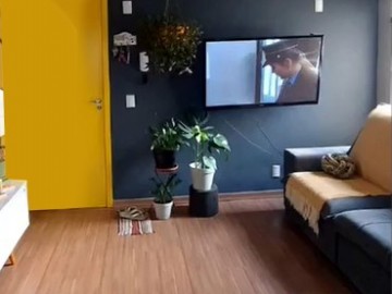 Distribuído em sala com piso flutuante e ensolarada, cozinha planejada completa com cooktop e forno embutido, área de serviço, 2 quartos, banheiro com box de vidro e 1 vaga de estacionamento.