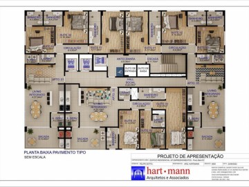 O apartamento conta com sala de estar e jantar integrados, cozinha americana, área de serviço, lavabo, sacada com churrasqueira, 3 suítes e garagem para 2 carros.