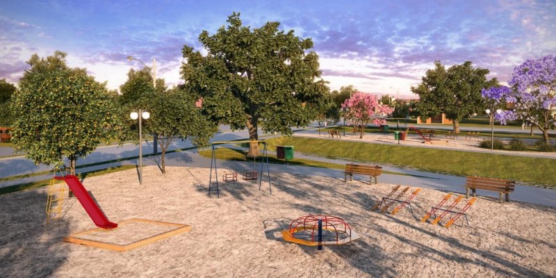 O residencial conta com mais de 3 hectares de área verde, espaços para conjuntos comerciais, pista de caminhada, ciclovia, 2 Quadras poliesportivas, 4 Playgrounds, 2 Academias ao ar livre, pomar com árvores frutíferas e horta comunitária.