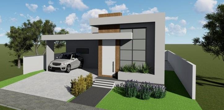Projeto contemporâneo muito bem distribuído numa bela casa térrea, sala e estar amplos com espera para calefação, depósito, lavanderia, cozinha ampla, três suítes sendo uma com closet.
