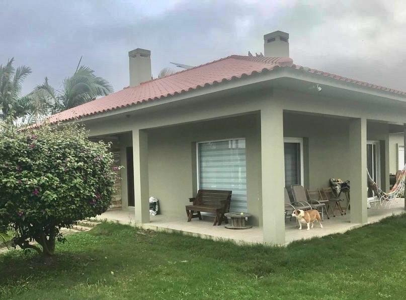 Possui sala de estar com lareira, sala de jantar, lavabo, banheiro completo, 3 dormitórios, sendo uma suíte com closet, cozinha, despensa, lavanderia, 2 depósitos, varanda e garagem para até 4 carros.