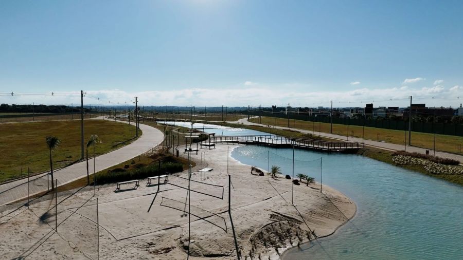 Diferenciais do empreendimento: Quadras de padell, tênis, futebol, beach tennis, poliesportiva, espaços parrilla/pizza, gourmet, cinema, kids, relax, jogos, redário, fogo de chão, salão de festas, restaurante, bar da piscina, piscina infantil, piscina térmica com spa, praia artificial, deck molhado, playground, academia, trilha ecológica, pista de caminhada, e muito mais!