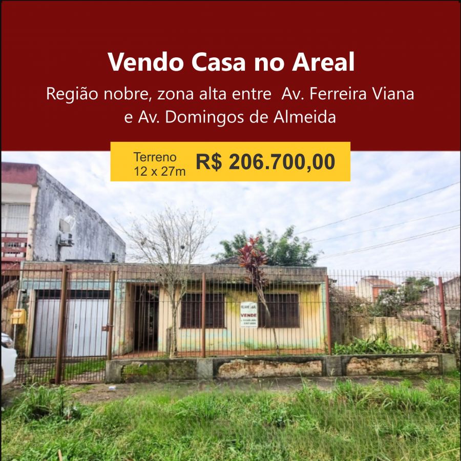Casa com 4 dormitórios, situada a apenas 30 metros da Avenida Domingos de Almeida, em uma das áreas mais valorizadas do Areal. O imóvel está em um terreno de 12,30m x 27m e requer reforma, o que permite personalizar e adaptar ao seu estilo e necessidades.