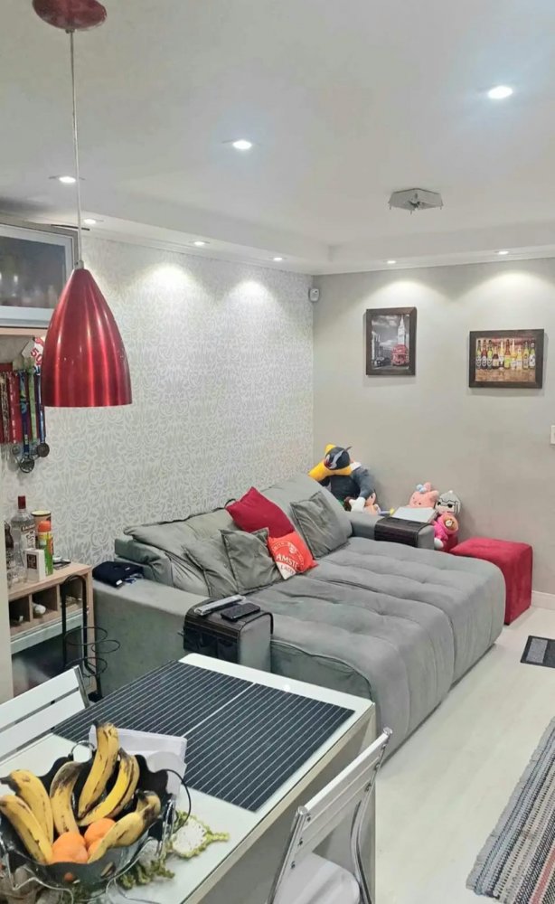 Ficam no imóvel: mesa jantar com 4 cadeiras, espelho grande, iluminação em LED e luminárias, banheiro com chuveiro, box e móvel sob medida, sofá retrátil e reclinável 2,10m, móveis planejados na sala, contendo bar, aparador e rack, cozinha planejada com armários aéreos, forno de embutir, tampo em granito e cooktop, coifa, pias na lavanderia e churrasqueira, roupeiro em L planejado, completo, com espelho e penteadeira, grade nas janelas dos quartos, grade com chaves na porta de entrada e sistema de alarme sem fio.