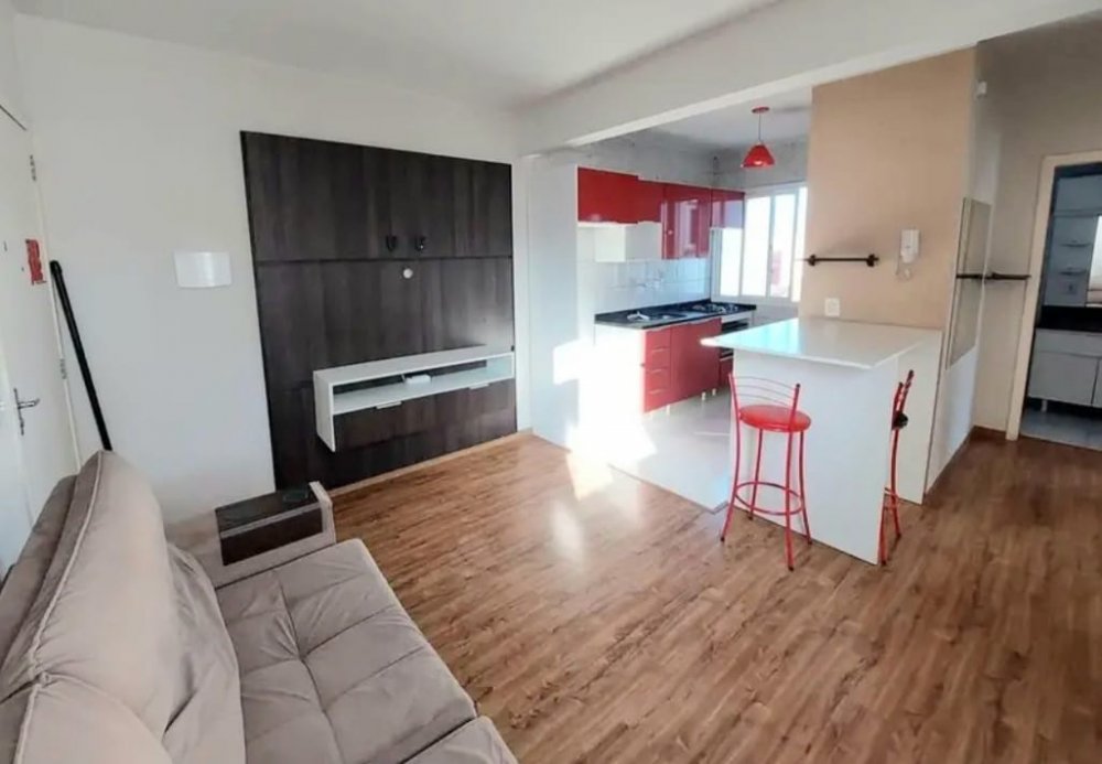 Mobiliado com split, mesa, painel para TV e sofá retrátil na sala, armários, box de vidro temperado e chuveiro no banheiro. Telas mosqueiteiras nas janelas em alumínio e redes de proteção.