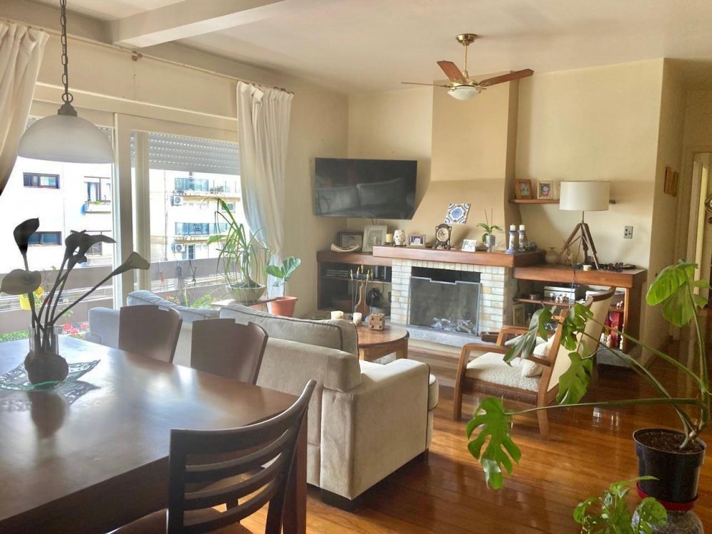 Distribuído em sala de estar com 2 ambientes e lareira, sacada, lavabo, copa-cozinha, área de serviço com banheiro completo, 3 dormitórios, banheiro social e vaga privativa.