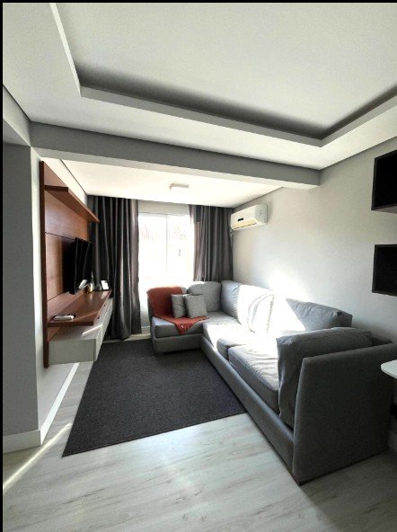O imóvel possui 2 dormitórios, com garagem e fica com mobília completa.