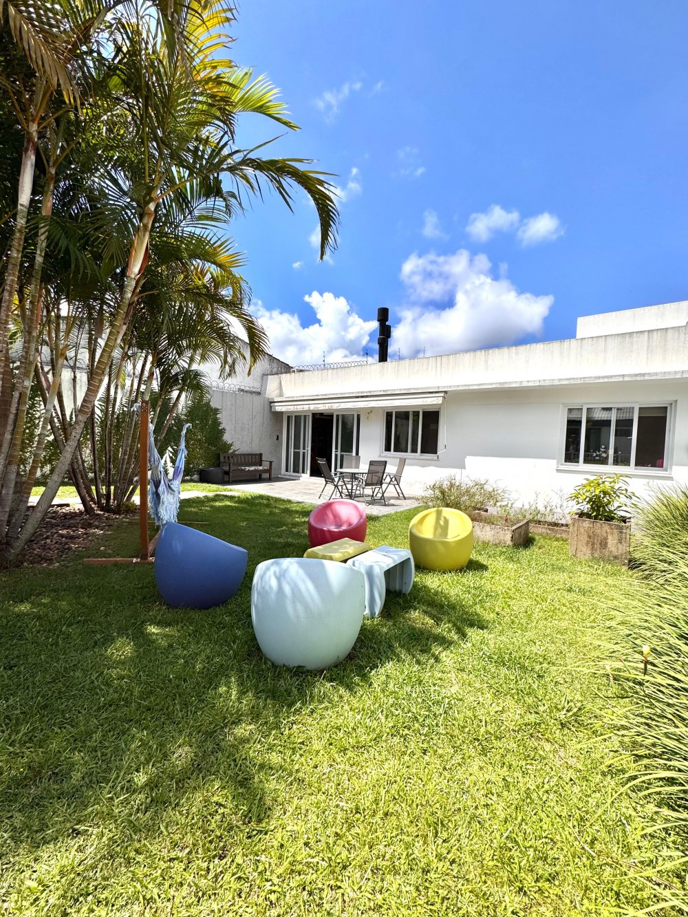Moderna e aconchegante, amplo sobrado distribuído em sala de estar com lareira, sala com churrasqueira e jantar integrada à cozinha, escritório, lavabo, adega, ampla lavanderia com dependência completa.