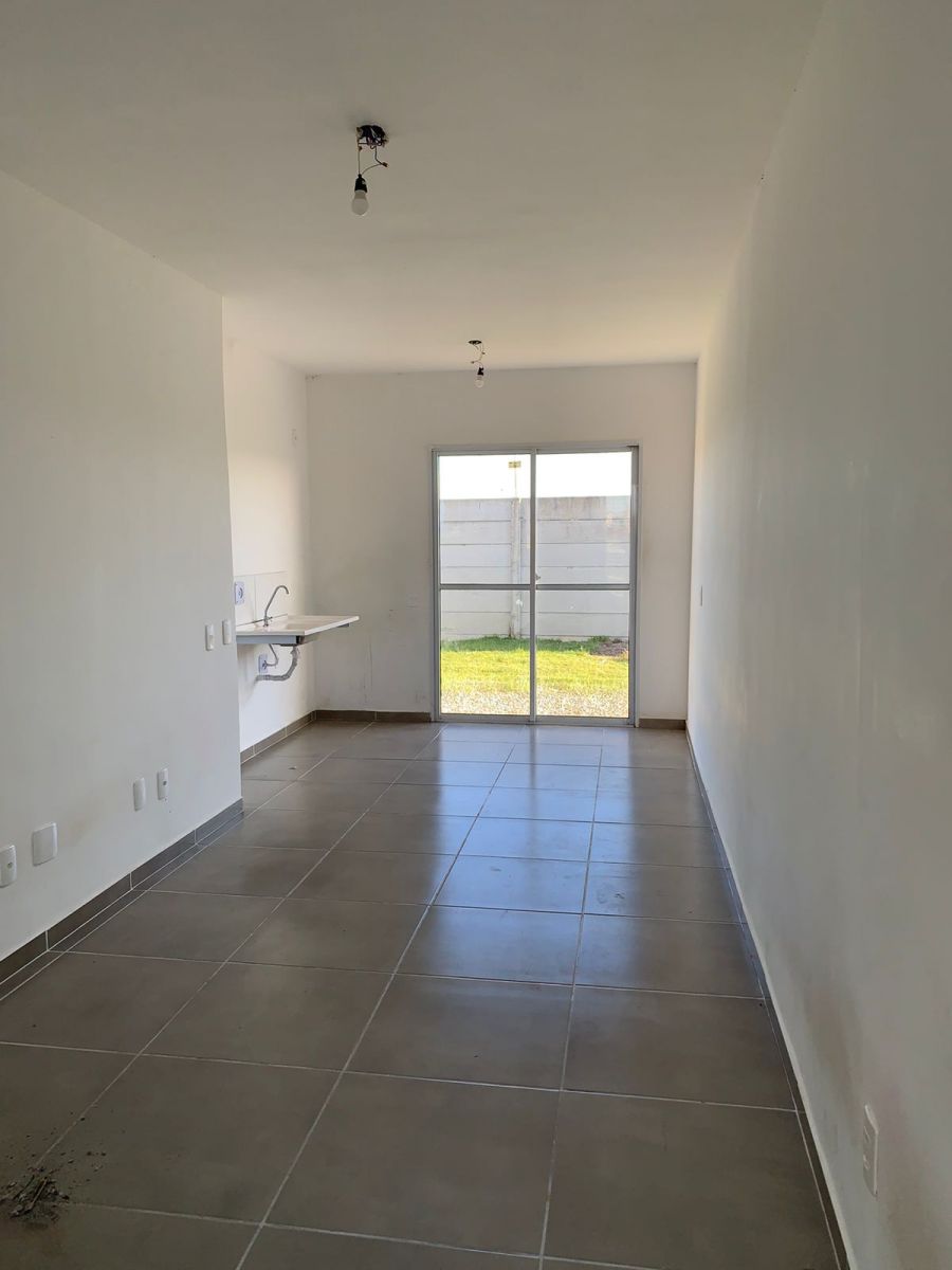 Possui sala de estar, cozinha integrada, 2 dormitórios, banheiro e pátio. Uma vaga de garagem.