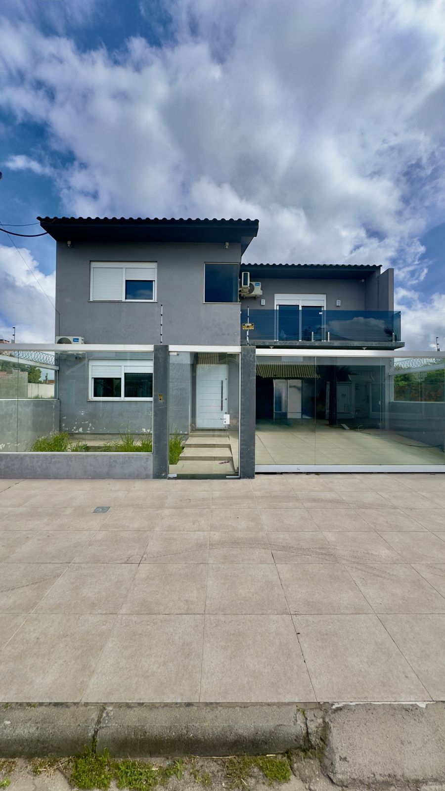 Distribuída em hall de entrada, escritório, banheiro social, sala de estar e jantar, cozinha integrada, garagem para dois carros e um amplo pátio com piscina. Conta com um salão com churrasqueira, banheiro auxiliar e depósito.