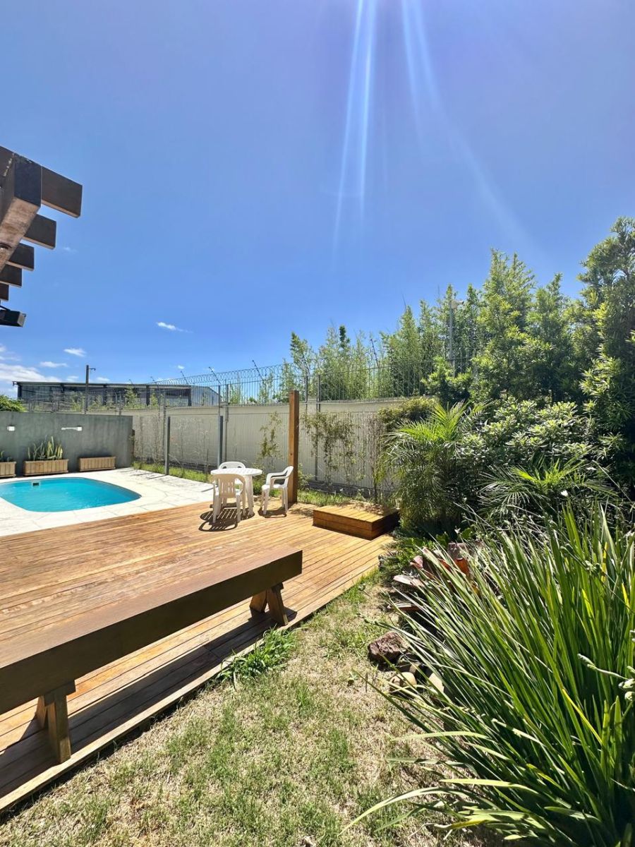 Distribuída em hall de entrada, lavabo, sala de estar com lareira, sala de jantar, cozinha com churrasqueira, varanda fechada anexada ao pátio, lavanderia, banheiro de serviço e pátio com piscina aquecida, deck e parrilla externa.