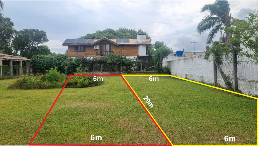 174.00m² de área total, 174.00m² de terreno (Área Total), 6.00m de terreno (Frente), 6.00m de terreno (Fundo), 29.00m de terreno (Esquerda), 29.00m de terreno (Direita)
