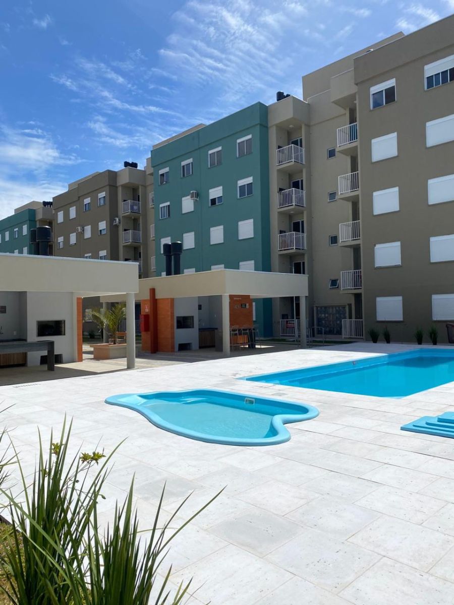 Condomínio com piscina e infraestrutura.