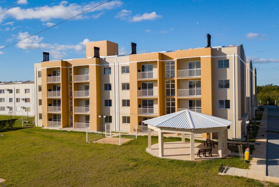 Imóvel novo, nunca habitado, distribuído em sala de estar, cozinha, área de serviço, banheiro social, 2 dormitórios e 1 vaga próximo a entrada do bloco.