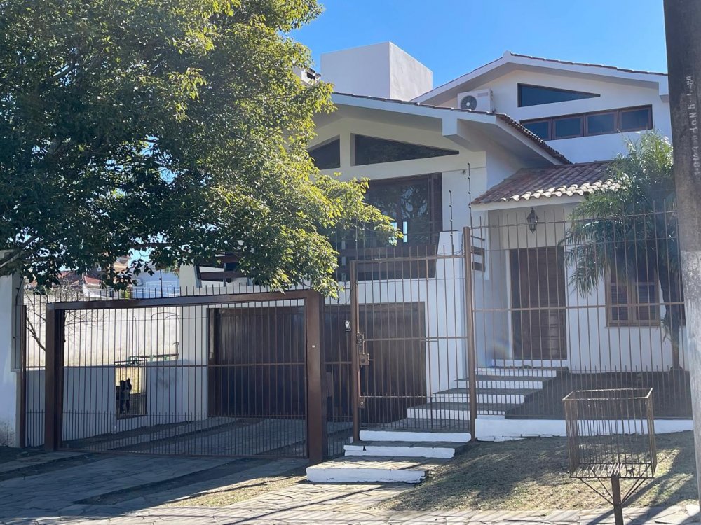 Imóvel bem projetado com excelente orientação solar, distribuído em dois pavimentos, no térreo possui duas vagas de garagem fechada, escritório, amplo living, sala de estar com lareira, sala de jantar com mais uma sala, sacada, lavabo, cozinha planejada, dependência completa, lavanderia, pátio com piscina, churrasqueira gourmet com varanda.