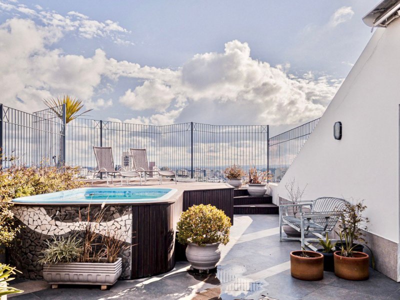 Distribuído em sala de estar e jantar com lareira, dois dormitórios sendo um com closet e outro com escriório, dois banheiros sendo um com banheira de hidromassagem, cozinha com móveis planejados, área de serviço, mazanino com sala.